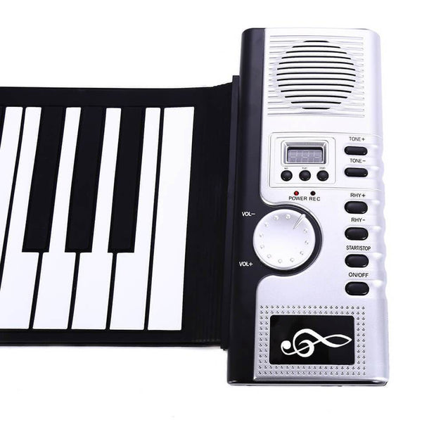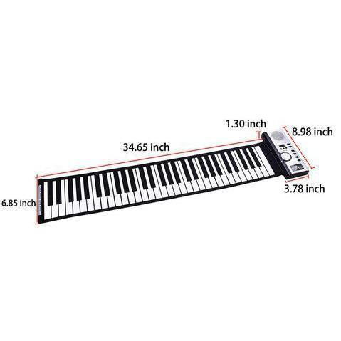 This Portable Electronic Piano is foldable and can be hand-carried and play it anytime and anywhere, also be rolled up for easy storage in you hand bag or carrying case.You can connect headphone to the jack on piano, enjoy quiet practice, or connect an external speaker, a live concert for your whole family. It can last for up to 12-15 hours of playing time,You can also plug the piano into a proper electrical outlet with a DC 6V adapter.