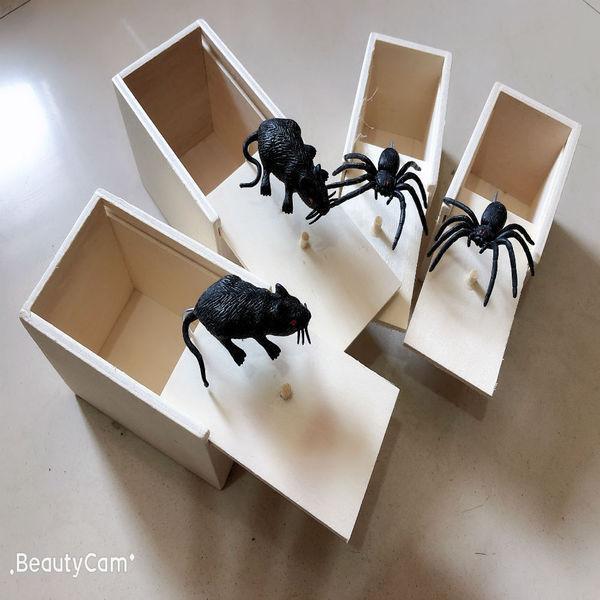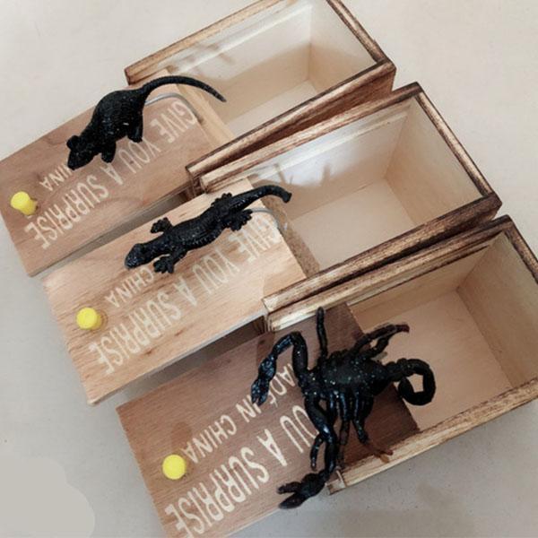 • Hidden spider in wooden box will jump out when you remove case cover.