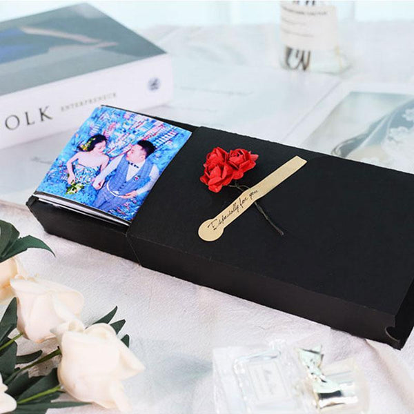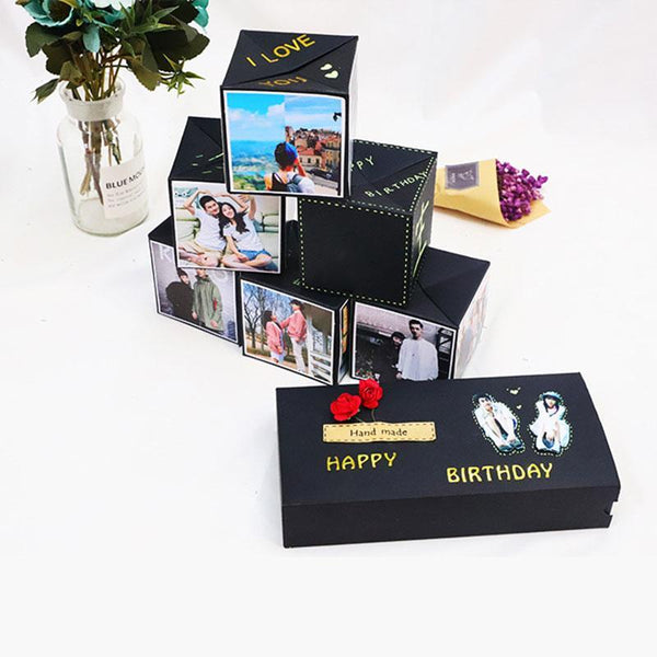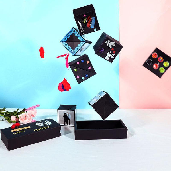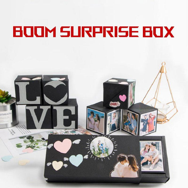 When Boom Surprise Box closed, the box looks like a gift box, you can customized personalize it, put pictures or write letters, sticky photos that about your memory. when open, all the small box will pop-up.