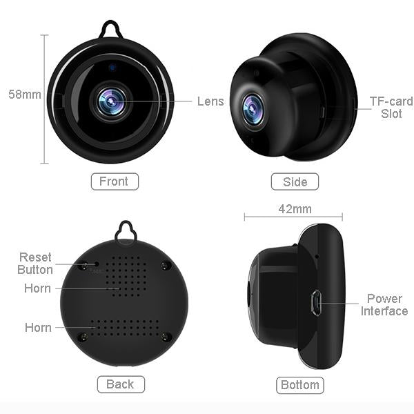 【Full 1080P HD Video and Night Vision Function】This home mini camera gives you fantastic night experience even in pitch dark and full protection to see the whole room at night - not just a limited spotlight view at any time of day or night.