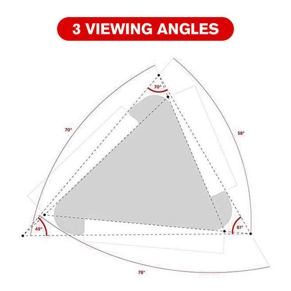- SMART DESIGN - Designed by an optical engineer to provide 3 different viewing angles has 3 sides of specific height & angle: 8.5” (49°) x 7.9” (70°) x 6.6” (61°), 11.5” in length.