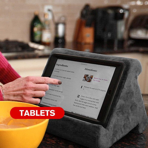 - TECH GIFT - Lap Stand Pillow is a year-round tablet accessory gift for iPad, e-reader, tablet, and book lovers. On the couch, in the kitchen with a cookbook, reading in bed, doing homework in the car, Lap Stand Pillow is terrific for readers of all ages.