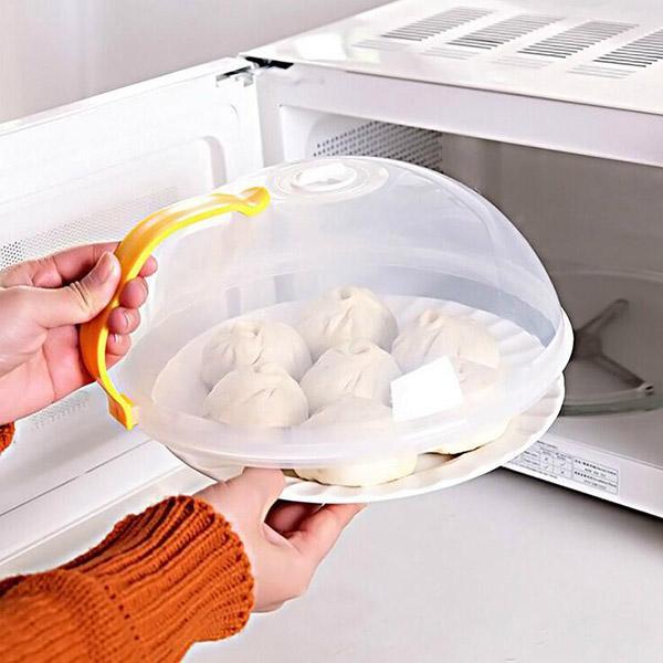 This Microwave Food Cover is used to cover the food you want to heat and prevent the liquid splattering out of the side that will soil your microwave. Put your food into the microwave, cover it with this microwave cover, when it is done, take out of the cover, wash clean, attaches to the roof of your microwave when it is not in used.
