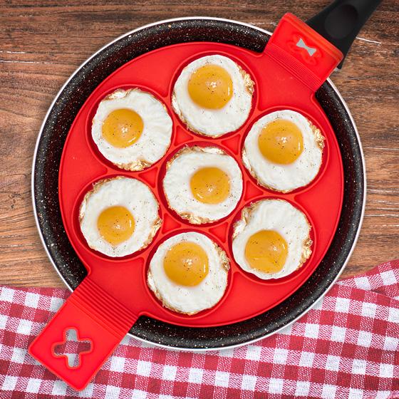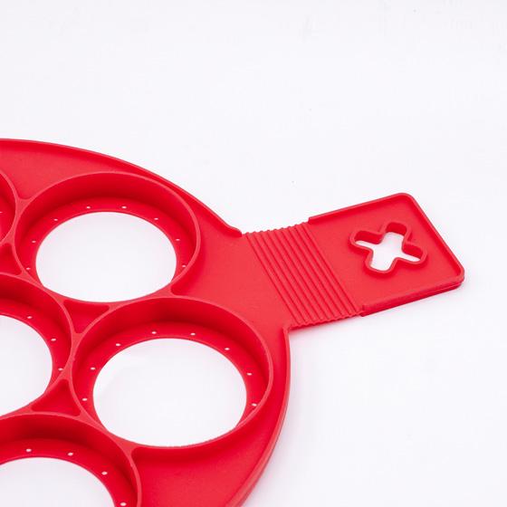 This Nonstick Pancake Mold has 7 round rings, separate food from each ring which diameter is 3 in, fantastic fast way to make perfect sized pancakes. It is high quality,  eco-friendly, nontoxic, Fast & Easy Way to Make Perfect Pancakes. A wide range of temperature from -104 to 446 degree, dishwasher, microwave, Oven safe. The food is easy to fall off. So this new design of small air holes around to easily flip and two extended ears to help you to take hot food without getting hurt.