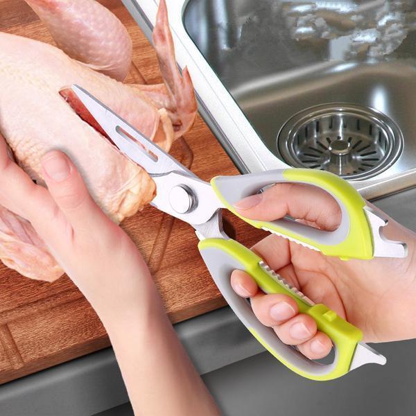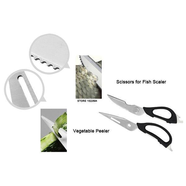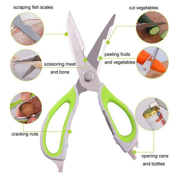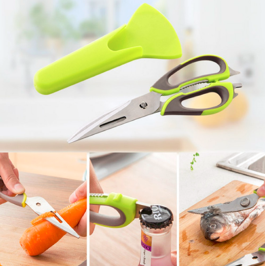Super Cut has 10 functions: bottle cap opener, screwdriver, nut cracker, scissor, wire stripper, vegetable peeler, fish scaler, knife blade, bone cutter and cutting blades. Talk about a universal tool, the Shears is perfect for home, office gardening, camping and more! Time to clear out all your tools and replace them with the Mighty Shears, as Shears does it all! Plus you receive a bones magnetic sheath to keep your Mighty Shears in a convenient safe location.