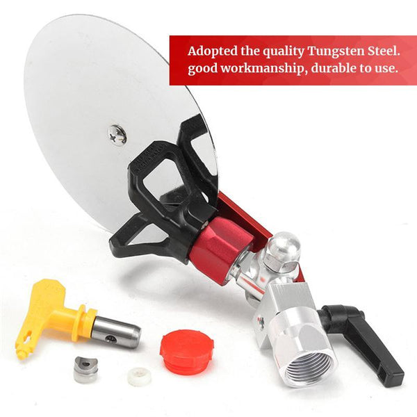 The accessory tool is specially used for wall color separated spraying, and create a clear colors wall spraying effect. Use the tool to extend long pole sprayer nozzle, the baffle can avoid wrong spraying due to paint splash.
