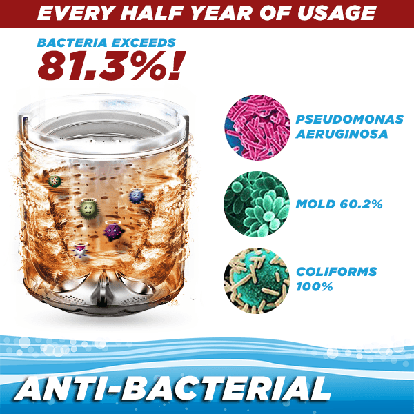 According to expert study, bacteria in household washing machine gets over the standard rate by ~81.3% after half year of usage, including: