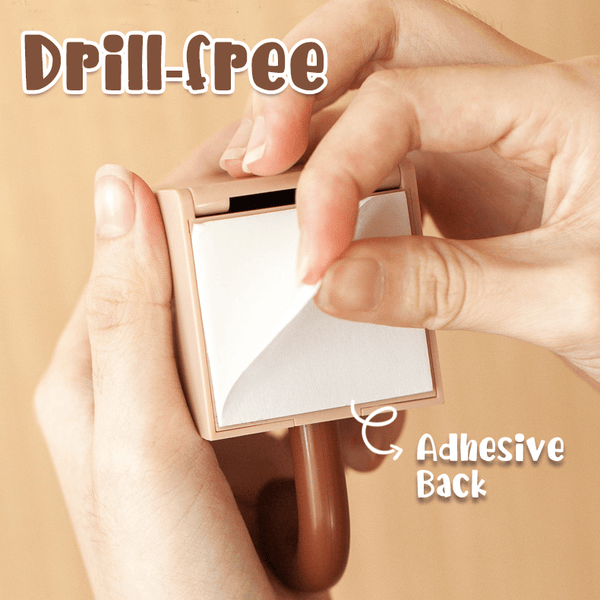 The hook can be installed with strong self-adhesive back. No drilling or gluing is required.