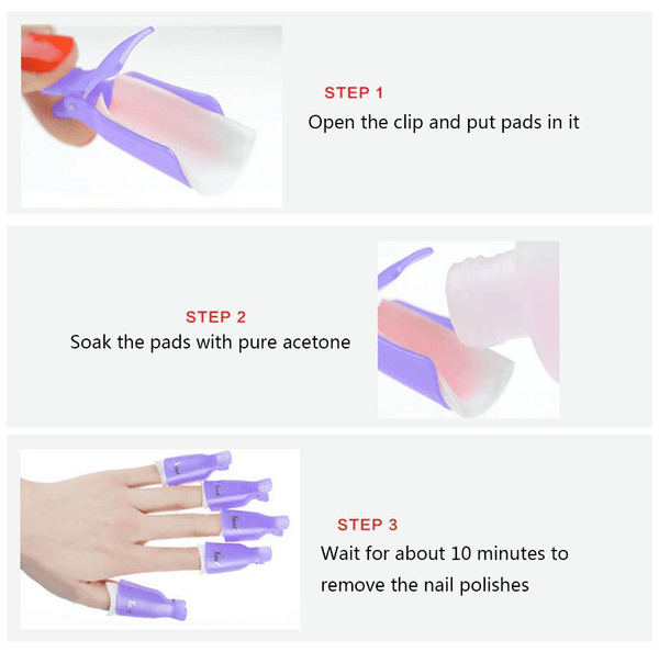 Gel Nail Polish Remover Clips are durable and reusable. They remove the artificial nails, nail tips or other nail decoration easily and quickly without nail damage.