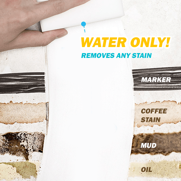 This sponge applies breakthrough nano technology - with high-density nano particles, it allows you to clean ANY surface using JUST WATER! It lifts stubborn stain, dirt, grease & grime like a magnet.