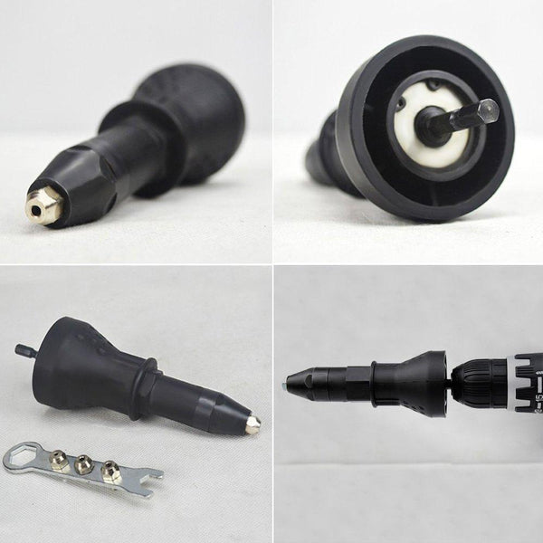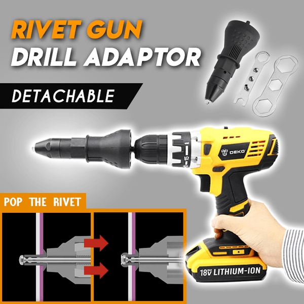 Rivet Gun Drill Adaptor is a professional tool that converts your cordless, Pneumatic or corded drill into a powerful riveter