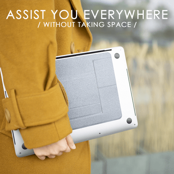 Light as 2.3 oz. (65 g) and thin as 1/9" (3 mm). The VENO stand featured an adhesive gluethat can attach to your laptops, so no need to carry anything extra in your bag.